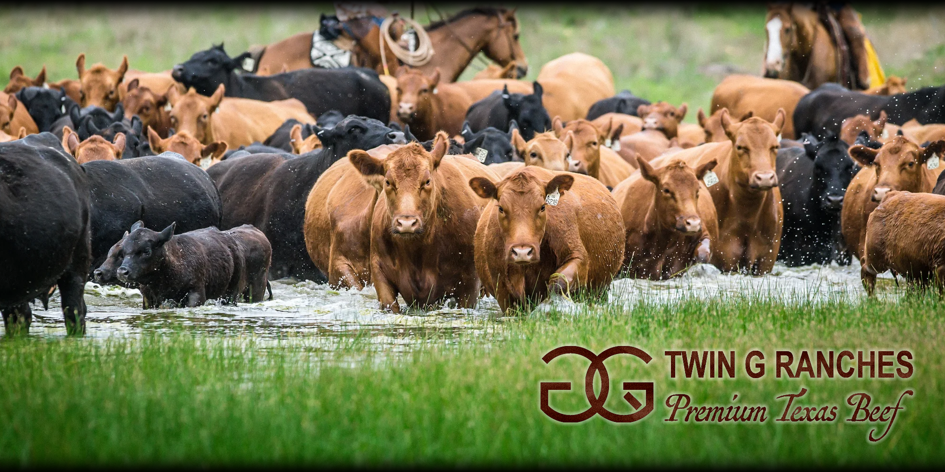 Twin G's Black Angus cattle are premium grain-finished beef with excellent marbling for a classic Texas beef experience. 14-day wet-aging develops optimal tenderness while preserving the rich, beefy flavor that defines quality Angus. Perfect for families seeking premium beef at fair market value.