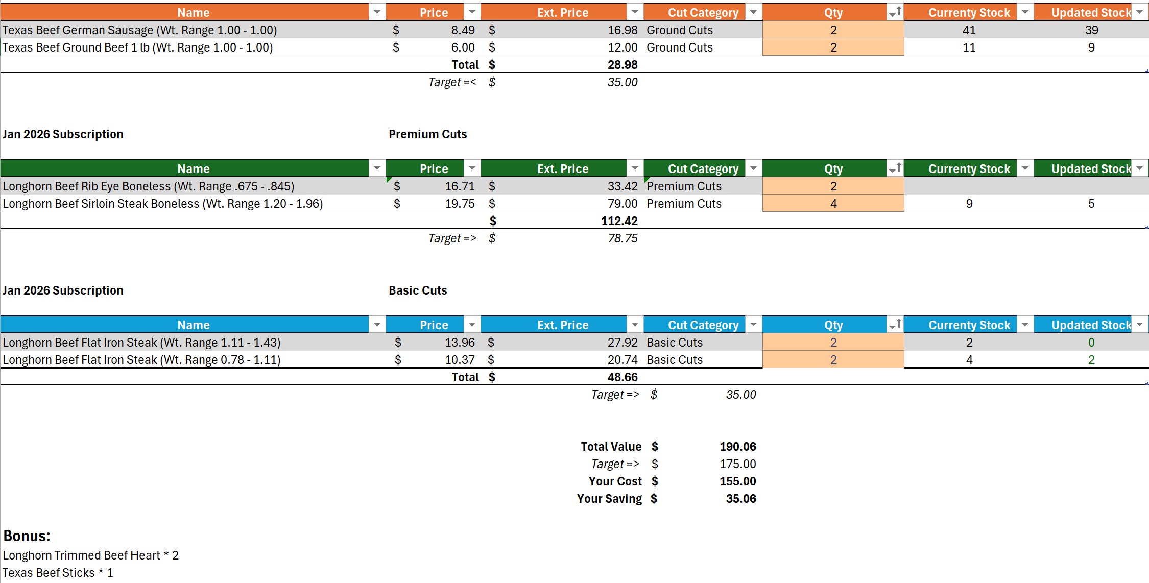 Your Curated Value Box was hand-packed according to our quality standards and inventory, featuring a carefully calculated mix of our most popular cuts: