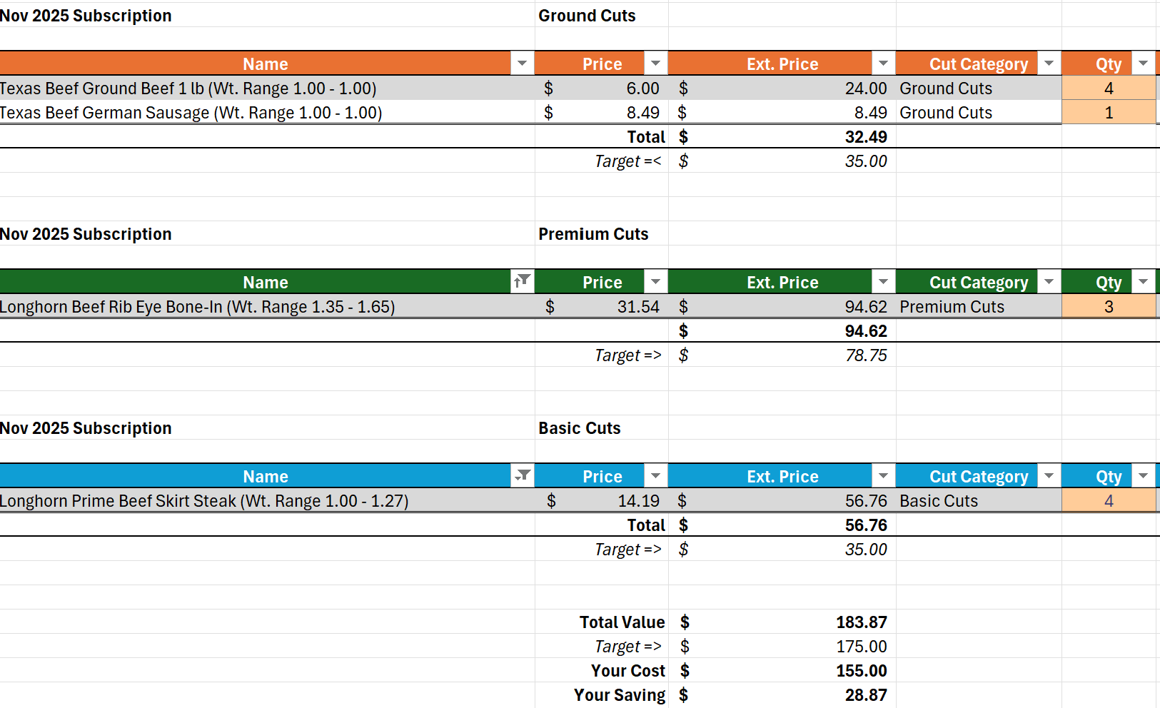 Your Curated Value Box was hand-packed according to our quality standards and inventory, featuring a carefully calculated mix of our most popular cuts: