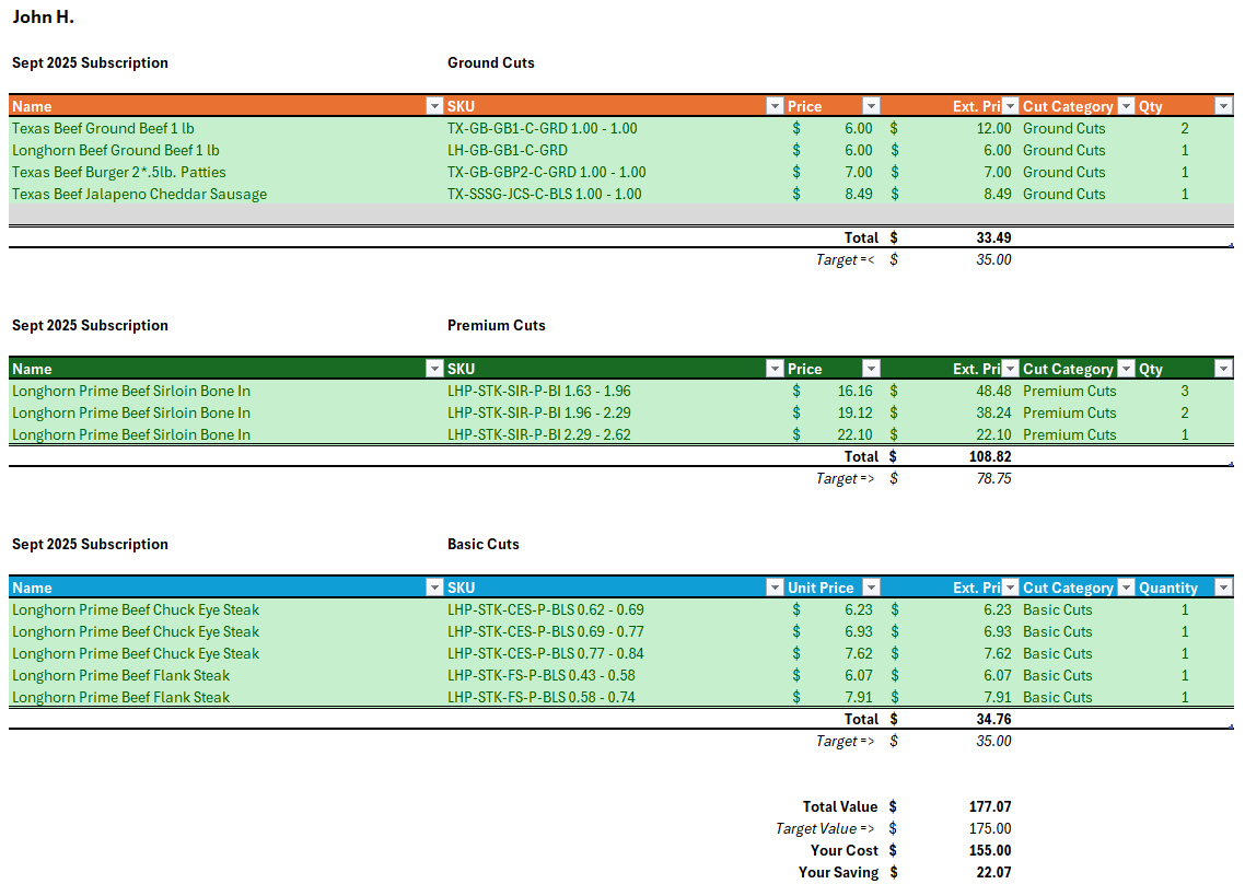Your Curated Value Box was hand-packed according to our quality standards and inventory, featuring a carefully calculated mix of our most popular cuts: