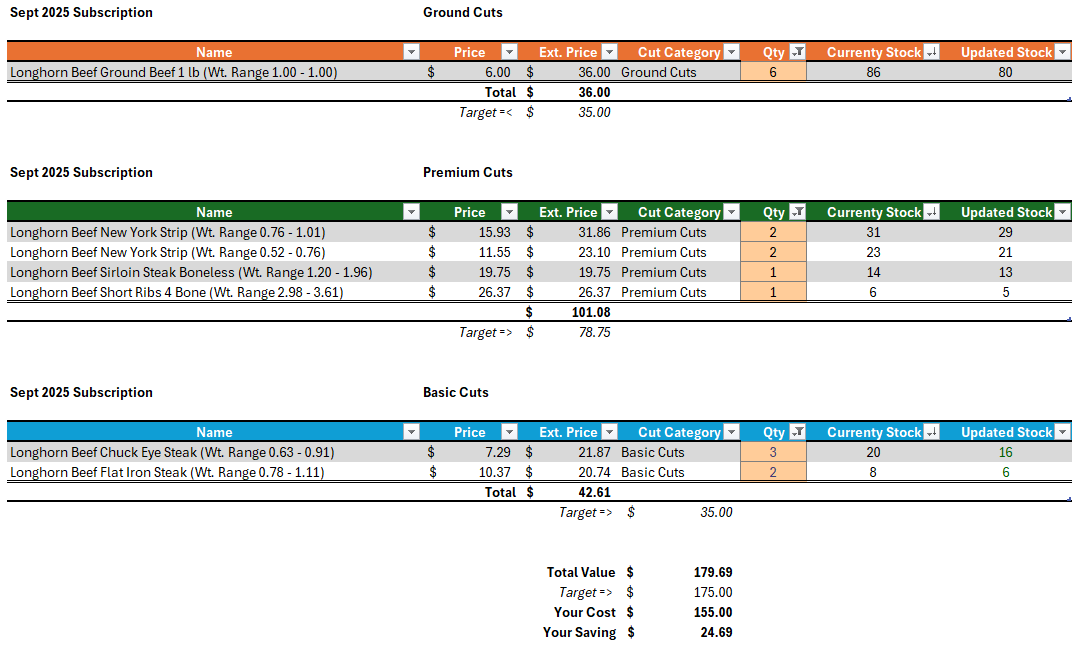 Your Curated Value Box was hand-packed according to our quality standards and inventory, featuring a carefully calculated mix of our most popular cuts: