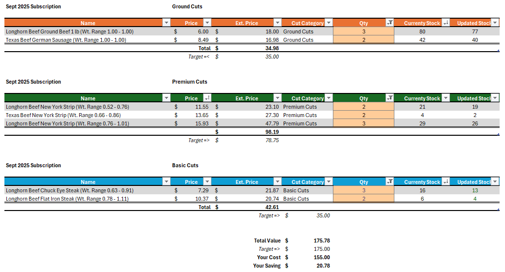 Your Curated Value Box was hand-packed according to our quality standards and inventory, featuring a carefully calculated mix of our most popular cuts: